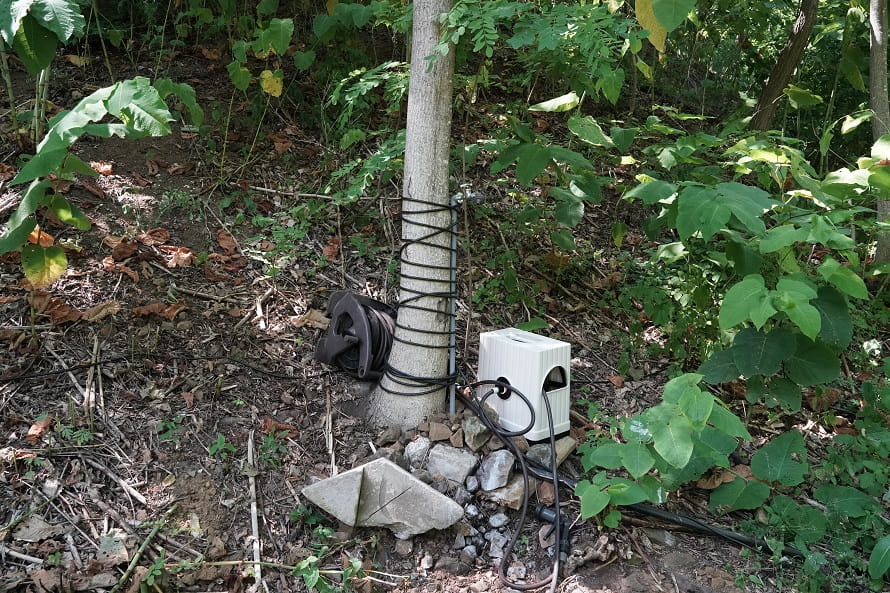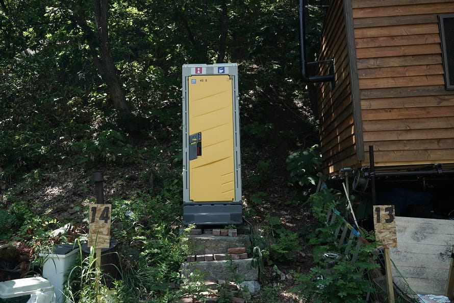 設備は仮設トイレが1つ、井戸水を引いた蛇口が1つ。水は水質検査をしており飲用可能です。排水は未整備のため、洗い物はできません。